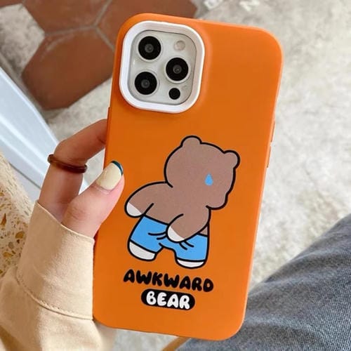 Estuche híbrido para teléfono iPhone 11 Pro Max Awkward Bear PC TPU (Naranja)