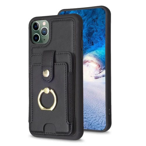 Anillo de Metal Tarjeta Bolsa Titular Caja para iPhone 11 Pro Max Bf27 (Negro)