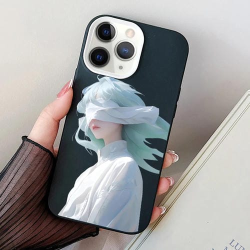 Estuche híbrido para iPhone 11 Pro Max Blindfold Girl PC y TPU (Negro)