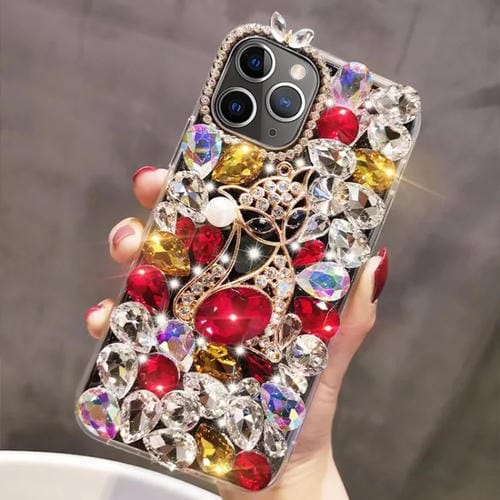 Funda para Teléfono iPhone 11 Pro Max Fox Hecha a Mano con Diamantes de Imitación y Piedras Preciosas para PC (Rojo)
