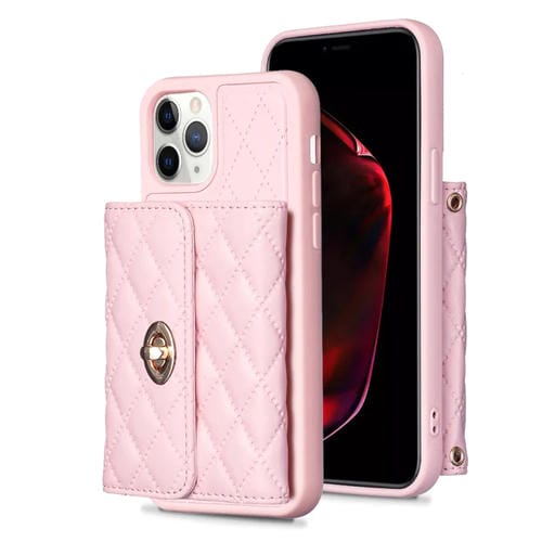 Funda de Cuero Cartera Rombica para iPhone 11 Pro Max Horizontal Hebilla de Metal (Rosa)