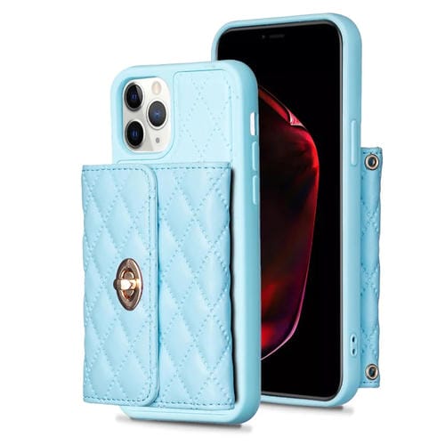 Funda para iPhone 11 Pro Max Horizontal Metal Hebilla Cartera Rombico Cuero (Azul)