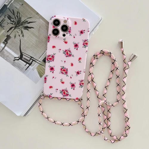 Funda de Teléfono TPU para iPhone 11 Pro Max Lanyard Floral Pequeña (Cordón Rosa + Flor Roja)