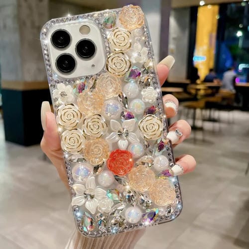 Estuche para Teléfono iPhone 11 Pro Rose con Diamante Perlado para PC (Albaricoque)