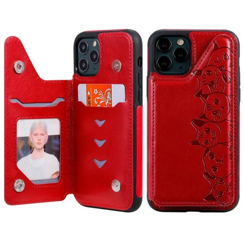 Estuche Protector Six Cats para iPhone 11 Pro con Patrón En Relieve Soporte Ranuras Tarjetas Marco Fotos (Rojo)