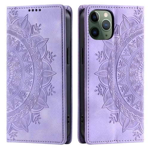 Funda de Teléfono para iPhone 11 Pro Totem Cuero Magnético En Relieve (Púrpura)