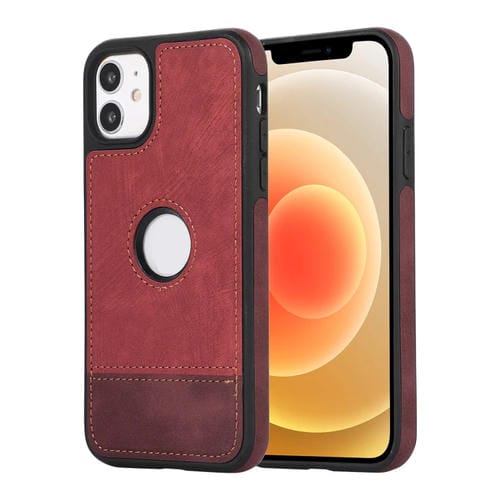 Funda para iPhone 12/12 Pro Empalme Costura Caja de Teléfono de PU con Recorte (Rojo)