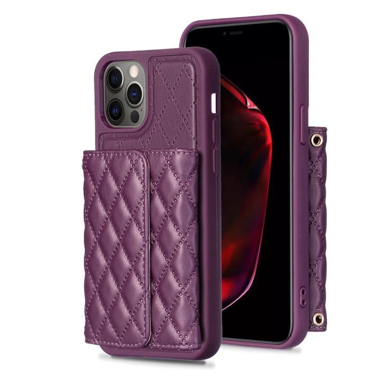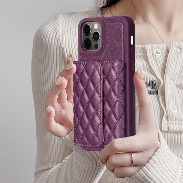 Estuche de Teléfono iPhone 12 / 12 Pro Cuero Rómbico con Billetera Horizontal (Púrpura Oscuro)
