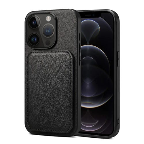 Funda Trasera iPhone 12/12 Pro Piel de Becerro de Imitación con Soporte (Negro)
