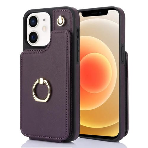 Funda para Teléfono Ym005 Skin Feel Card Bag para iPhone 12/12 Pro con Cordón Largo (Púrpura Oscuro)