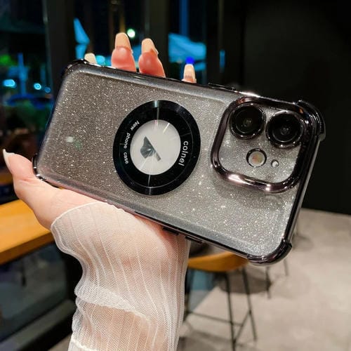 Estuche para teléfono iPhone 12 Magsafe con armadura brillo degradado y galvanoplastia (Negro)