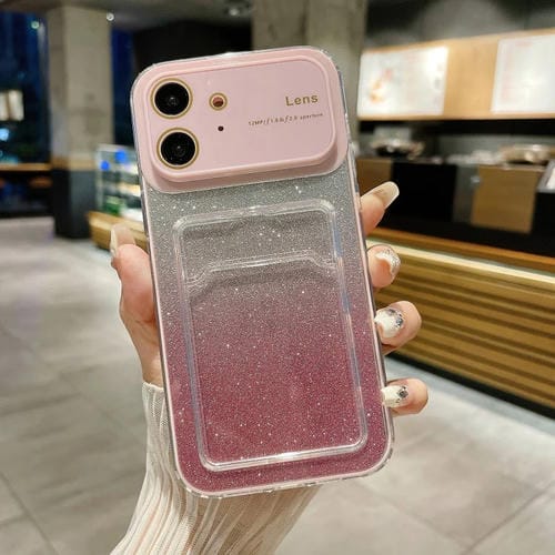 Estuche para Teléfono iPhone 12 con Brillo Degradado Ventana Grande y Ranura para Tarjeta (Rosa)
