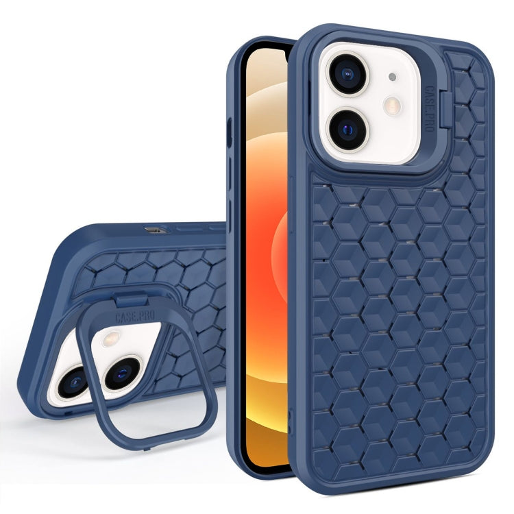 Funda Magnética para iPhone 12 con Soporte para Lente Radiante en Forma de Panal (Azul)