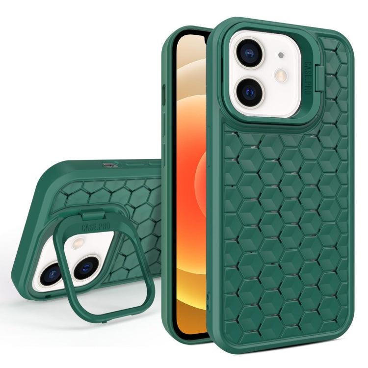 Funda Magnética para Teléfono iPhone 12 con Soporte para Lente Radiante en Forma de Panal (Verde)