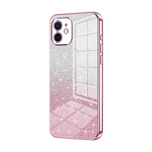 Funda para Teléfono iPhone 12 Galvanizada con Polvo de Brillo Degradado (Rosa)