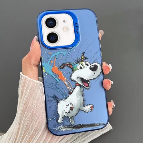 Funda para Teléfono iPhone 12 Imd Animal Graffiti TPU + PC Doble Cara (Perro Corriendo)