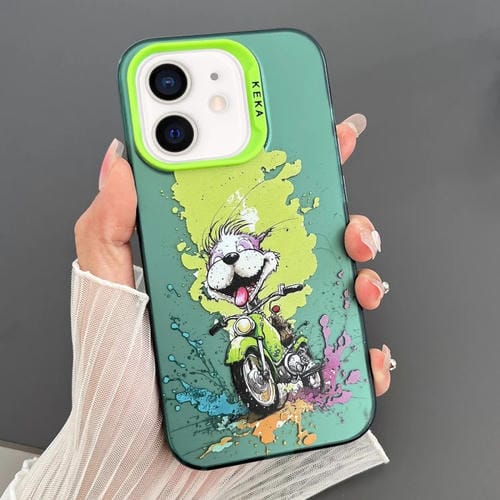 Funda para Teléfono iPhone 12 Imd Animal Graffiti TPU + PC Doble Cara (Perro de Motocicleta)