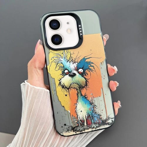 Funda para Teléfono iPhone 12 Imd Animal Graffiti TPU + PC Doble Cara (Perro Furioso)