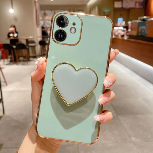 Funda para Teléfono TPU Apple iPhone 12 Galvanoplastia Love Heart Holder (Verde)