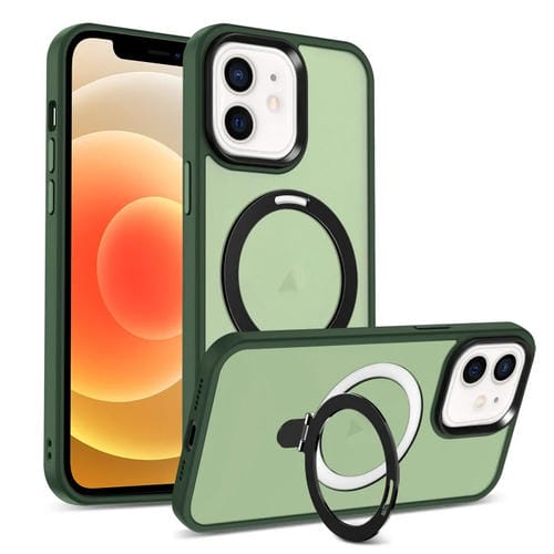 Funda para teléfono iPhone 12 Magsafe Holder Skin-Feel PC Hybrid (Verde)
