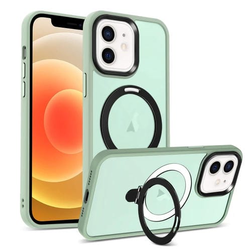 Funda para teléfono iPhone 12 Magsafe Holder Skin-Feel PC Hybrid (Verde Matcha)