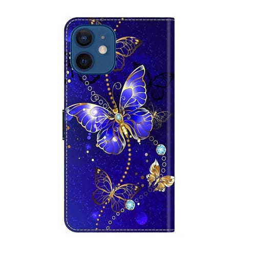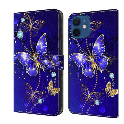 Funda Protectora para iPhone 12 Mini y 13 Mini Crystal 3D Cuero a Prueba de Golpes (Mariposa de Diamante)