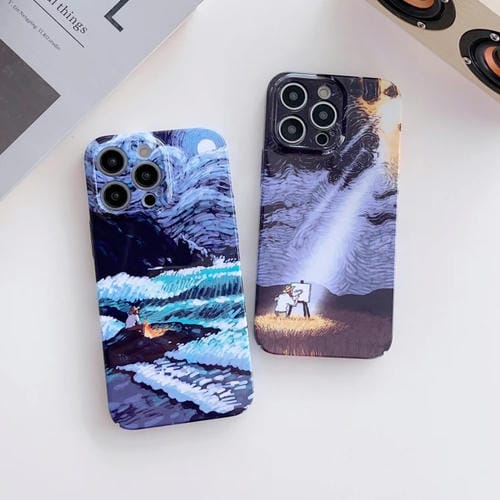 Funda para iPhone 12 Mini PC Patrón Pintura al Óleo Agujero Preciso (Puesta de Sol)