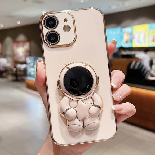 Estuche para teléfono iPhone 12 Mini Embrace Stars con soporte para astronauta galvanizado (Rosa)