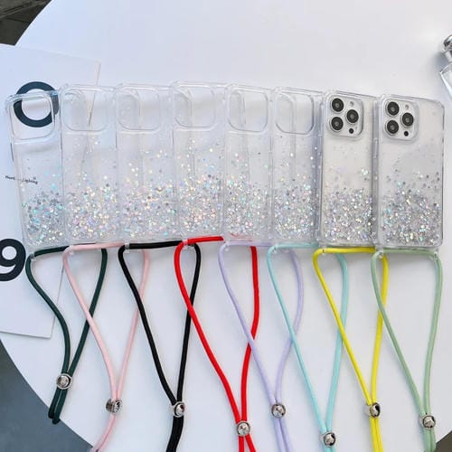 Funda para iPhone 12 Mini Lanyard Glitter Epoxy Clear Phone Case (Rosa)