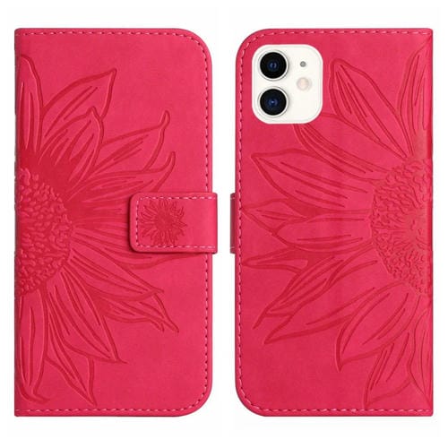Funda Flip de Cuero para iPhone 12 Mini Skin Feel Sun Flower Pattern con Cordón (Rose Red)