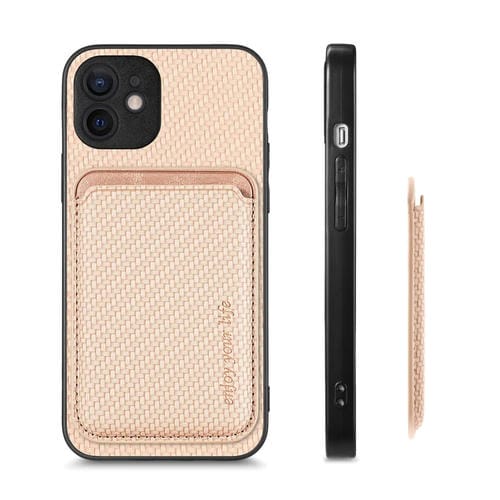 Funda para iPhone 12 Mini Cuero Fibra de Carbono Magsafe Magnética (Caqui)
