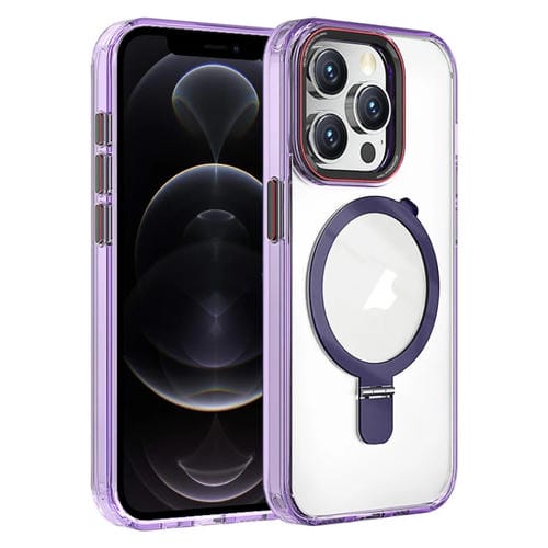 Funda para teléfono iPhone 12 Pro Crystal TPU Hybrid PC Magsafe Holder (Púrpura Transparente)