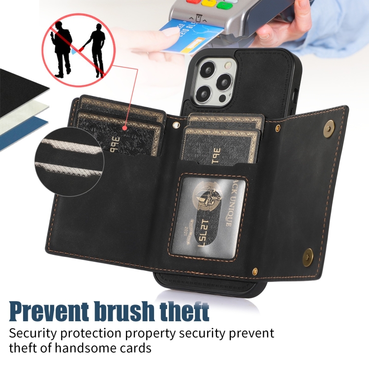 Estuche de Teléfono Cuero RFID para iPhone 12 Pro Tres Pliegues con Cordón (Negro)