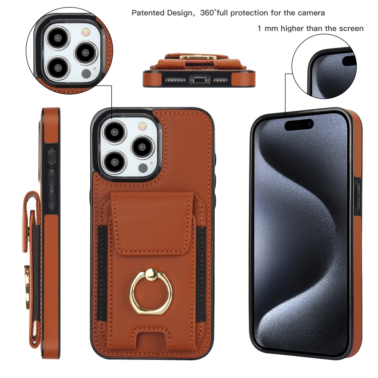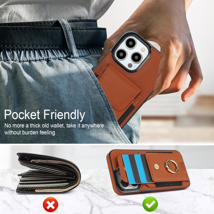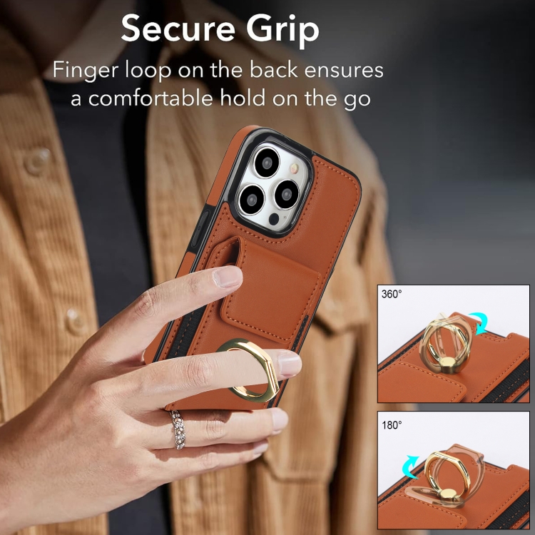 Funda Elástica para Teléfono iPhone 12 Pro con Soporte para Anillo y Bolsa para Tarjetas (Marrón)