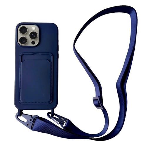 Funda para Teléfono iPhone 12 Pro Silicona Líquida con Ranura para Tarjeta y Cordón (Azul Oscuro)
