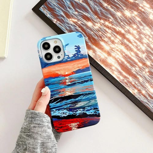 Estuche para teléfono 2 en 1 iPhone 12 Pro Max patrón de mar pintura al óleo (Azul)