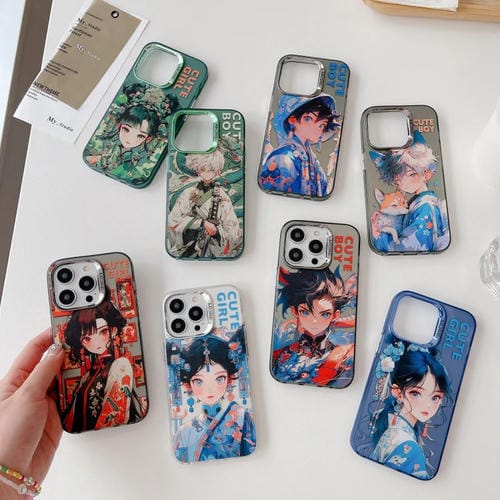 Funda para iPhone 12 Pro Max Estilo Antiguo Chino Anillo de Lente Electrochapado PC Hybrid TPU (Blue Letter Boy)