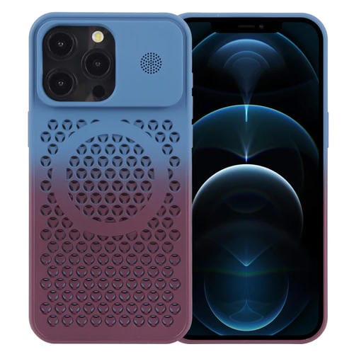 Estuche Magnético para iPhone 12 Pro Max con Aromaterapia y Enfriamiento de Panal (Azul Rojo)