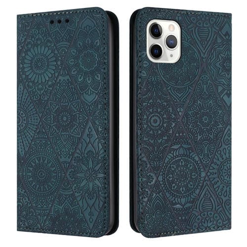 Estuche para teléfono iPhone 12 Pro Max cuero adsorción relieve étnico (Azul)
