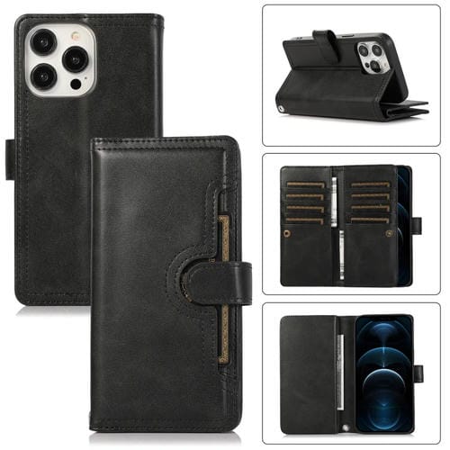 Funda para Teléfono iPhone 12 Pro Max Cuero con Ranura para Tarjeta y Pulsera (Negro)