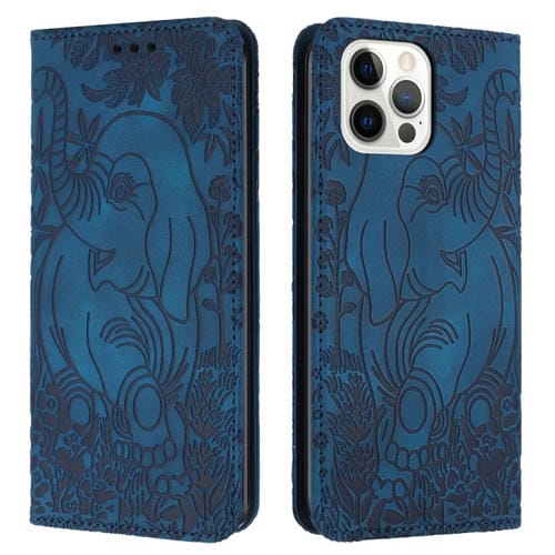 Funda para Teléfono iPhone 12 Pro Max Cuero Relieve Elefante Retro (Azul)
