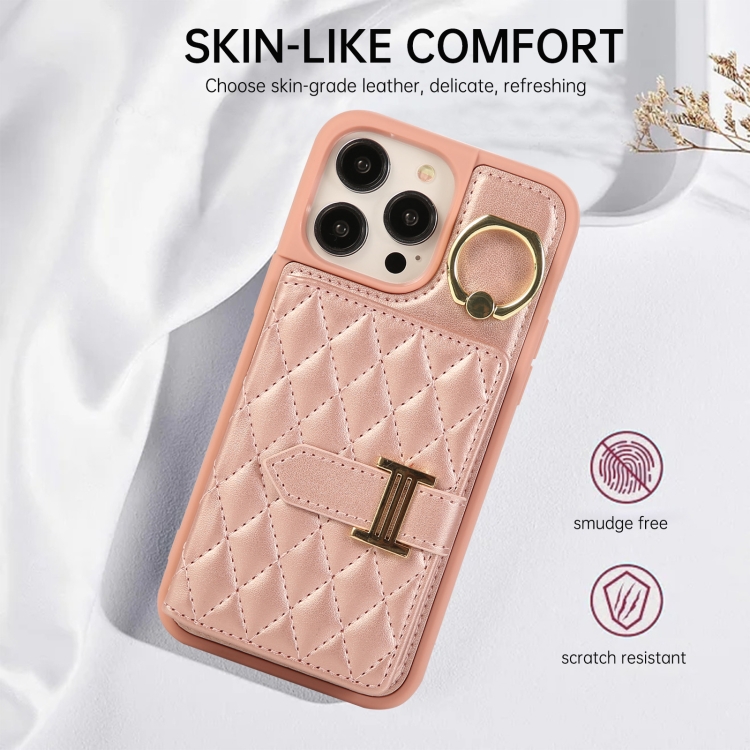 Funda para iPhone 12 Pro Max Horizontal Card Bag Ring Holder con Doble Cordón (Oro Rosa)