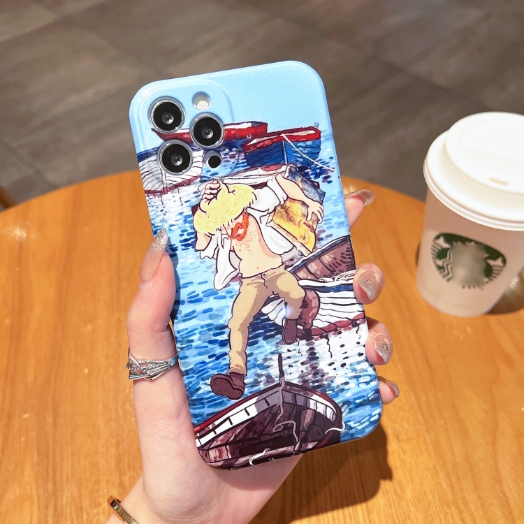 Estuche para Teléfono iPhone 12 Pro Max Patrón de Pintura al Óleo PC Brillante (Saltar En El Bote)