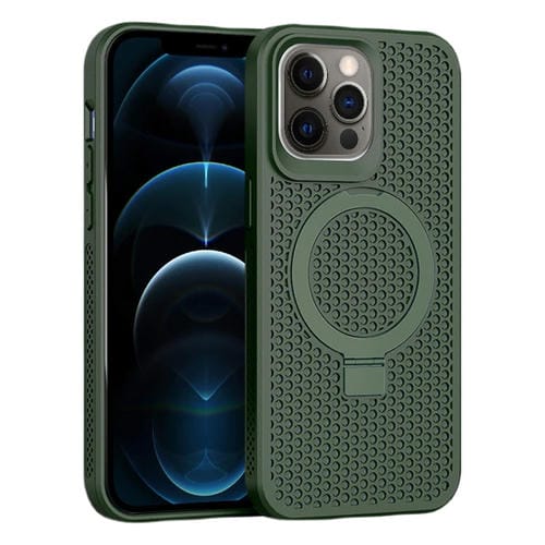 Funda para iPhone 12 Pro Max Skin Feel PC + TPU Magnética con Enfriamiento y Soporte (Verde Oscuro)