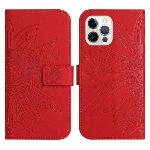Funda de Cuero para iPhone 12 Pro Max Skin Feel Sun Flower Pattern Flip con Cordón (Rojo)
