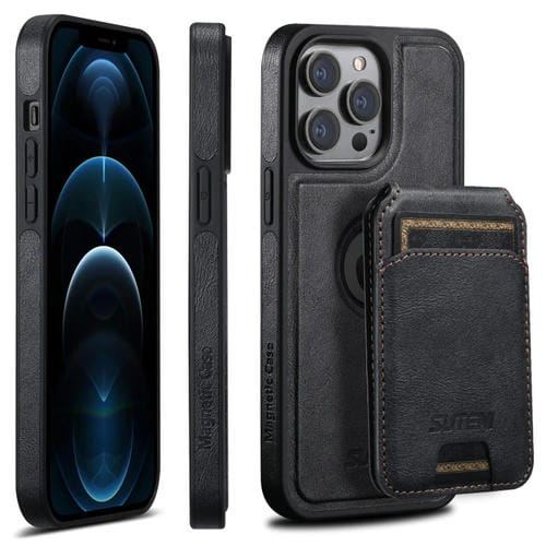 Funda para Teléfono Suteni M2 Oil Wax Magsafe para iPhone 12 Pro Max con Bolsa para Tarjeta Horizontal (Negro)