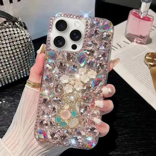 Caja de teléfono para iPhone 12 Pro Plum Blossom con incrustaciones de diamantes hecha a mano (Rosa)