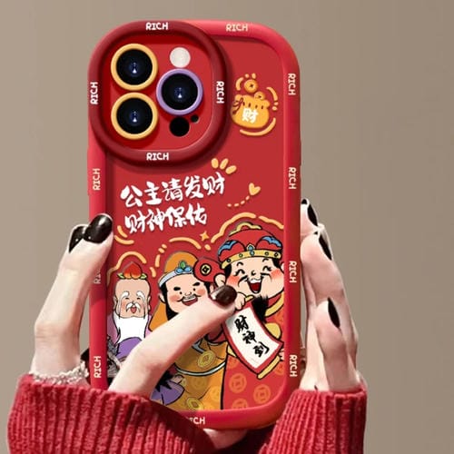 Funda para Teléfono iPhone 12 Pro Puffy Phone Case Princess Please Fortune God Of Wealth a Prueba de Caídas (Rojo)
