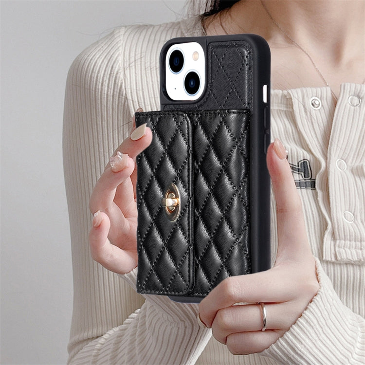 Cartera para iPhone 13 Rombal Caja de Teléfono Cuero con Hebilla de Metal Horizontal (Negro)