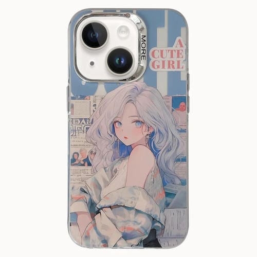 Funda para iPhone 13 Anillo de Lente Electrochapado PC Hybrid TPU Estilo Antiguo Chino (Silver Haired Girl)